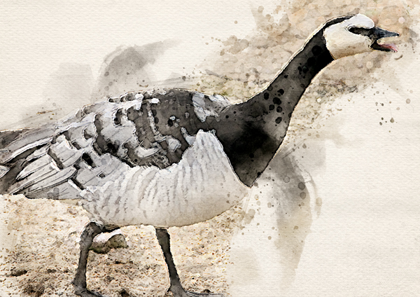 La Bernache nonnette est une oie de taille moyenne avec une tête blanche, une poitrine noire et un dos gris argenté. Elle niche principalement dans l’Arctique et migre vers l’Europe occidentale en hiver. Elle fréquente les zones côtières, les estuaires et les prairies, se nourrissant de graminées et de plantes aquatiques.